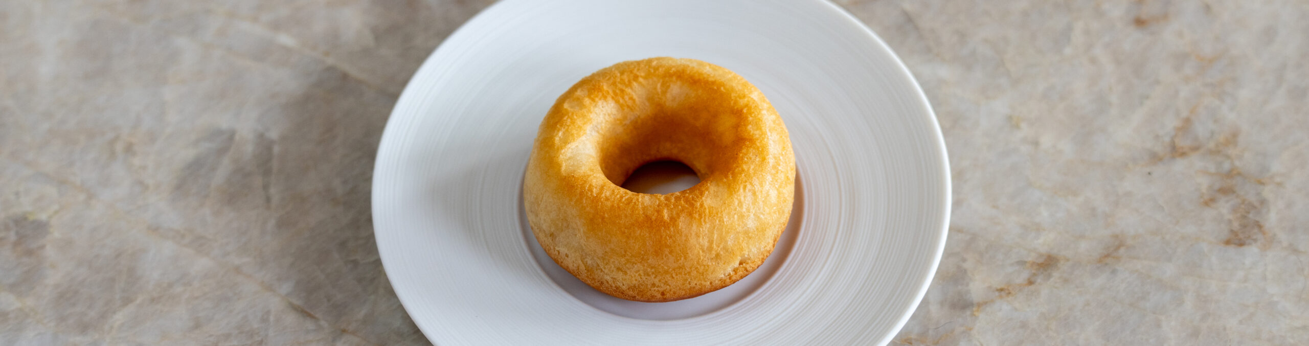 - Once it’s well rested dust some flour on your worktop and use a rolling pin to roll out the dough till it’s a centimeter thick. Then cut it with a big cutter and cut the center with a small cutter. Now spray a thin layer of baking spray in a couple small savarin tins. Place the dough in the tins and gently press it down to insure they proof evenly.