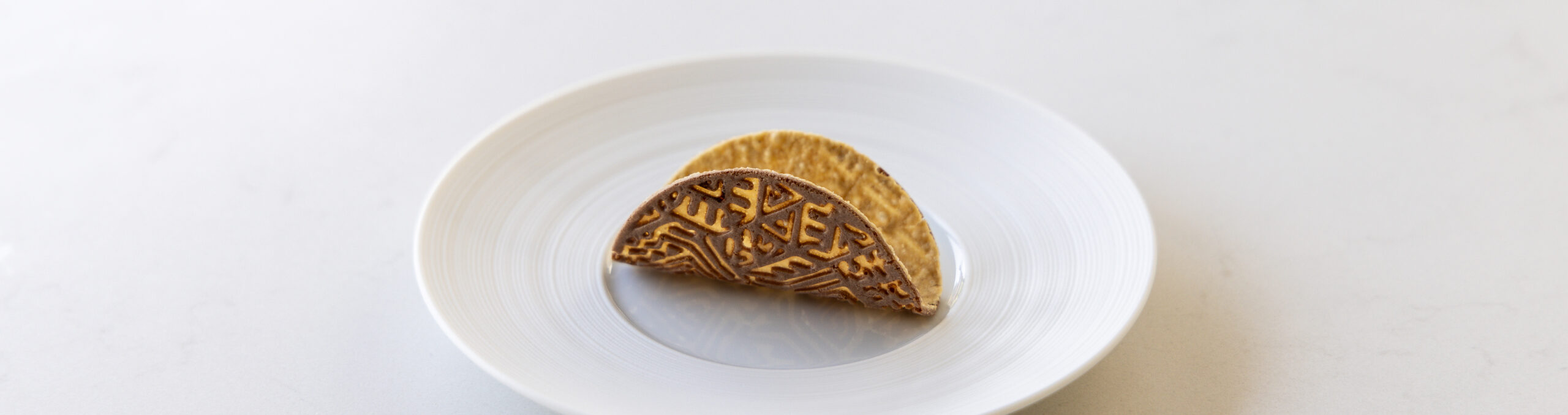 • Then spread it on a taco mold. Click here for more info. Level it and then bake it at 160 °C for 8 minutes.