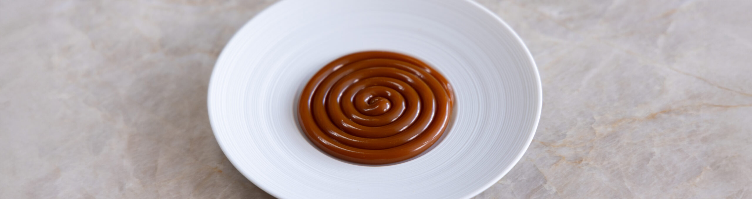 - Once the caramel has reached the desired temperature pour it into a bowl and add the white chocolate. Blend it till smooth. Be sure to keep the blender at the bottom of the bowl to prevent any air from mixing with the caramel.