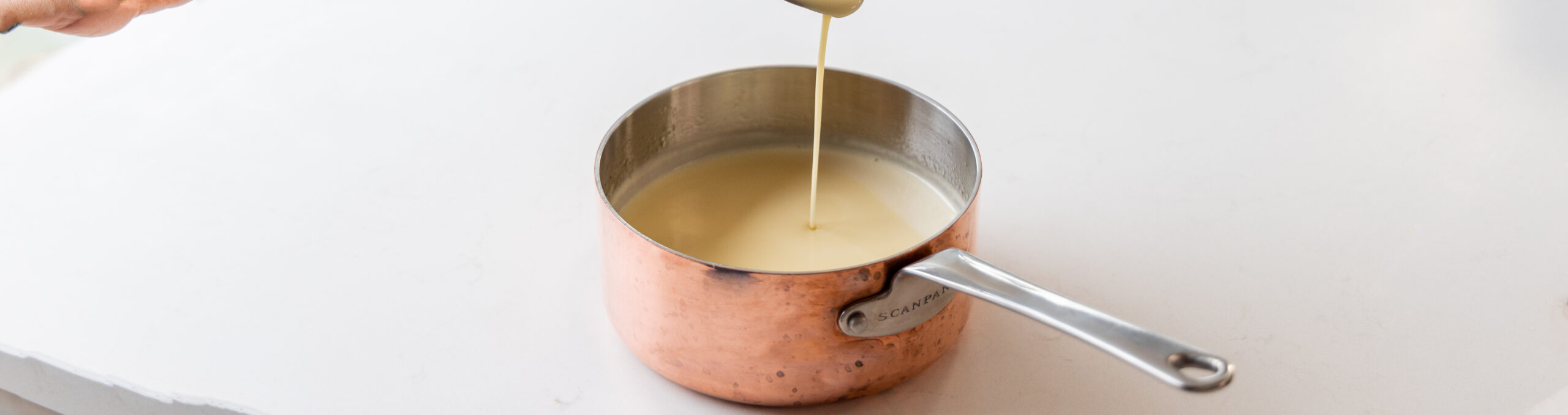 • Pour the castric into a saucepan together with the cream and the salt. Bring this to a boil.
